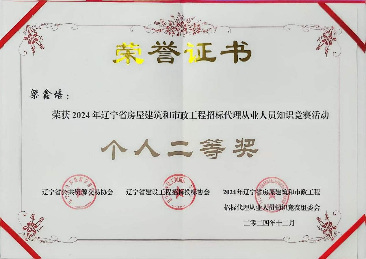 12月4日,遼寧省房屋建筑和市政工程招標(biāo)代理從業(yè)人員知識(shí)競(jìng)賽活動(dòng)圓滿收官,公司代表隊(duì)獲得賽事團(tuán)隊(duì)最高獎(jiǎng)項(xiàng)“卓越團(tuán)隊(duì)獎(jiǎng)”,參賽選手梁鑫培獲得個(gè)人二等獎(jiǎng)。